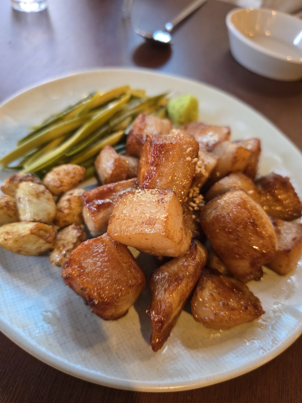 고기는 육즙 팡팡 + 특히 옆에 저 죽순<?> 인지 마늘쫑<?> 인지 곁들여먹으니 아주 좋았고