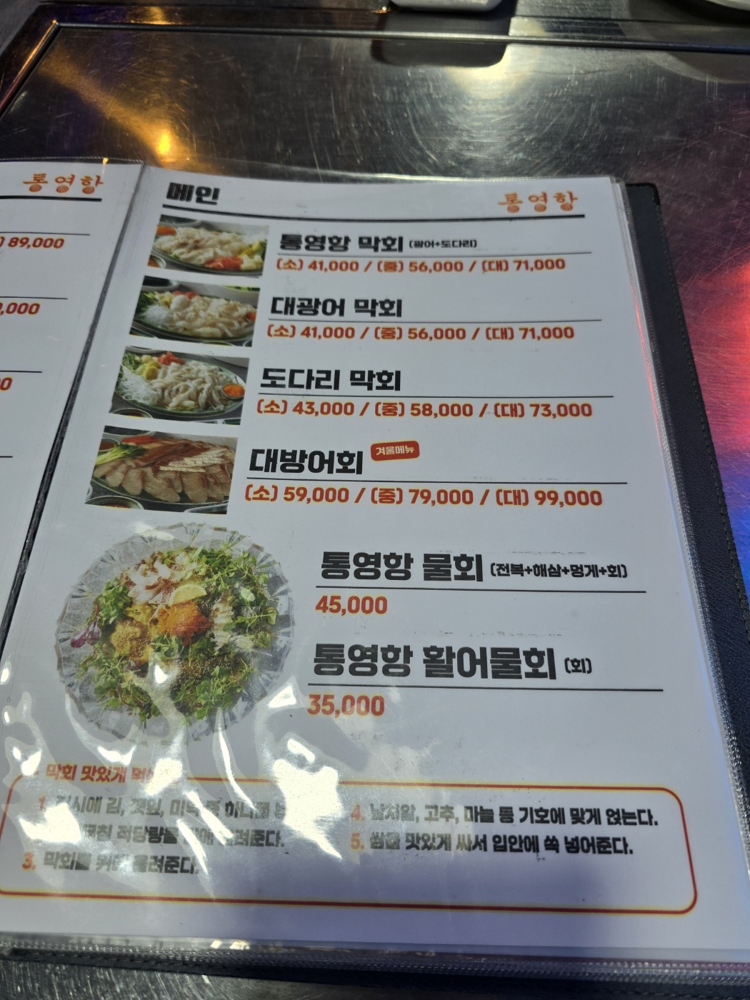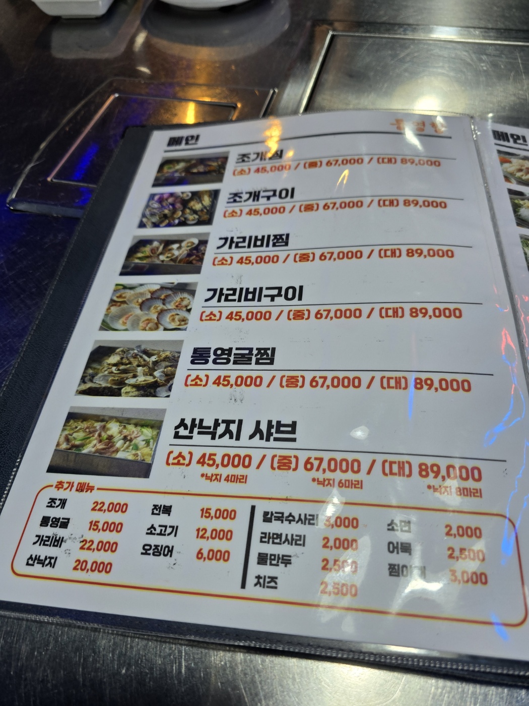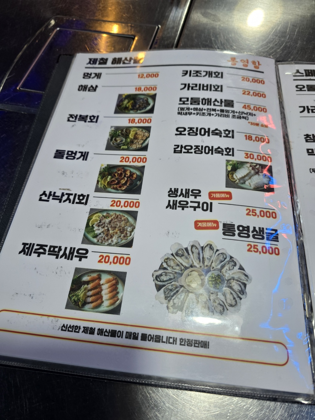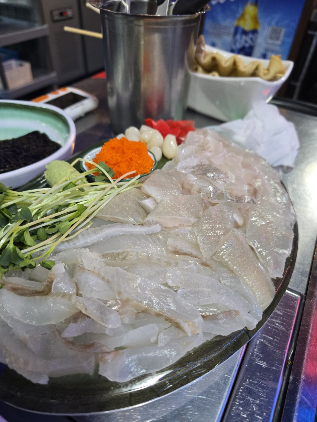 입장하자마자 바다 내음이 훅 들어오는데, 불쾌하지 않고 오히려 신선한 해산물집 특유의 "믿음 가는 냄새"라 오히려 안심이 되더군요.