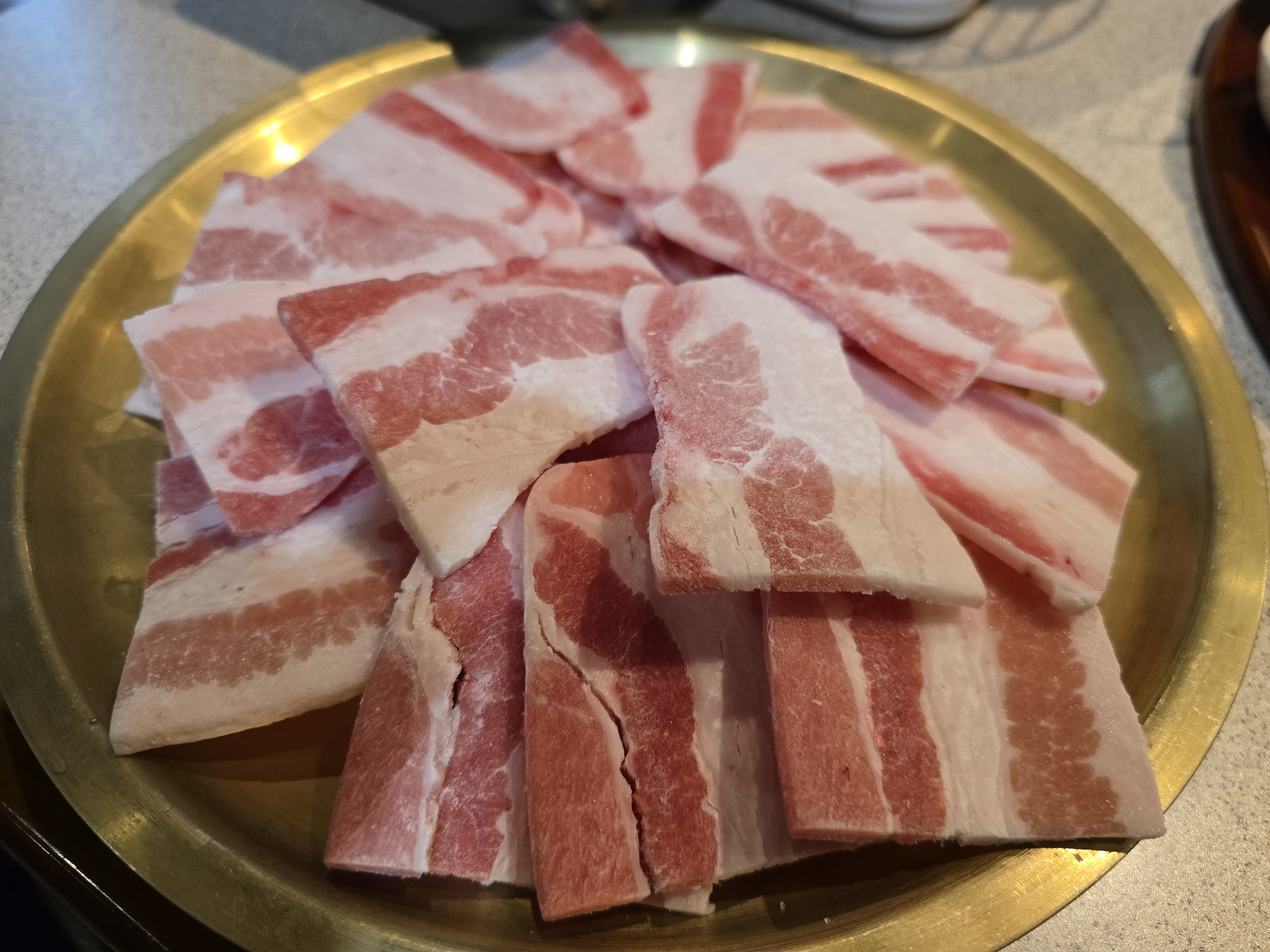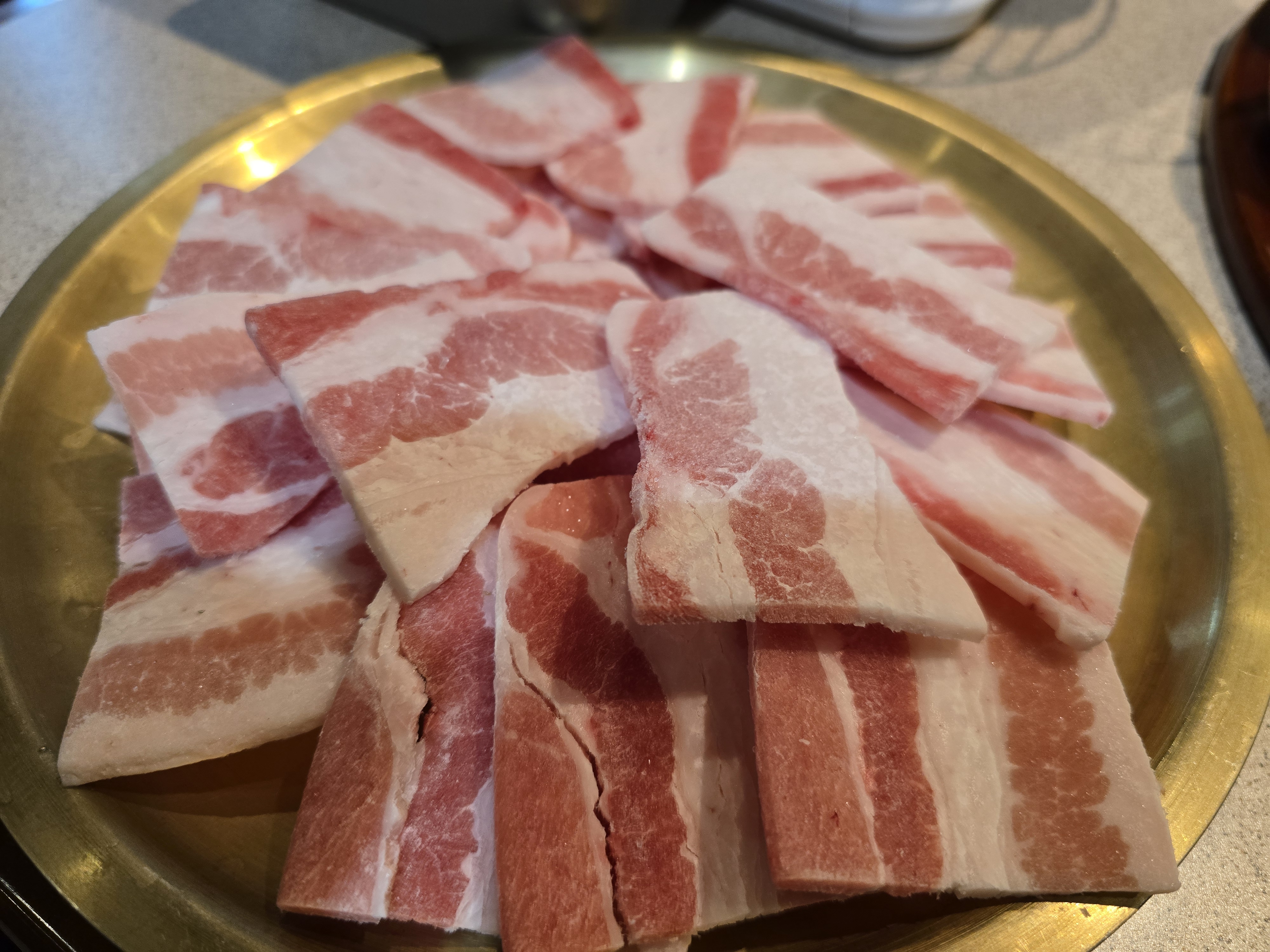 한 장 한 장 두툼하게 썰려 있어서 익히기 전부터 식감이 기대됐어요