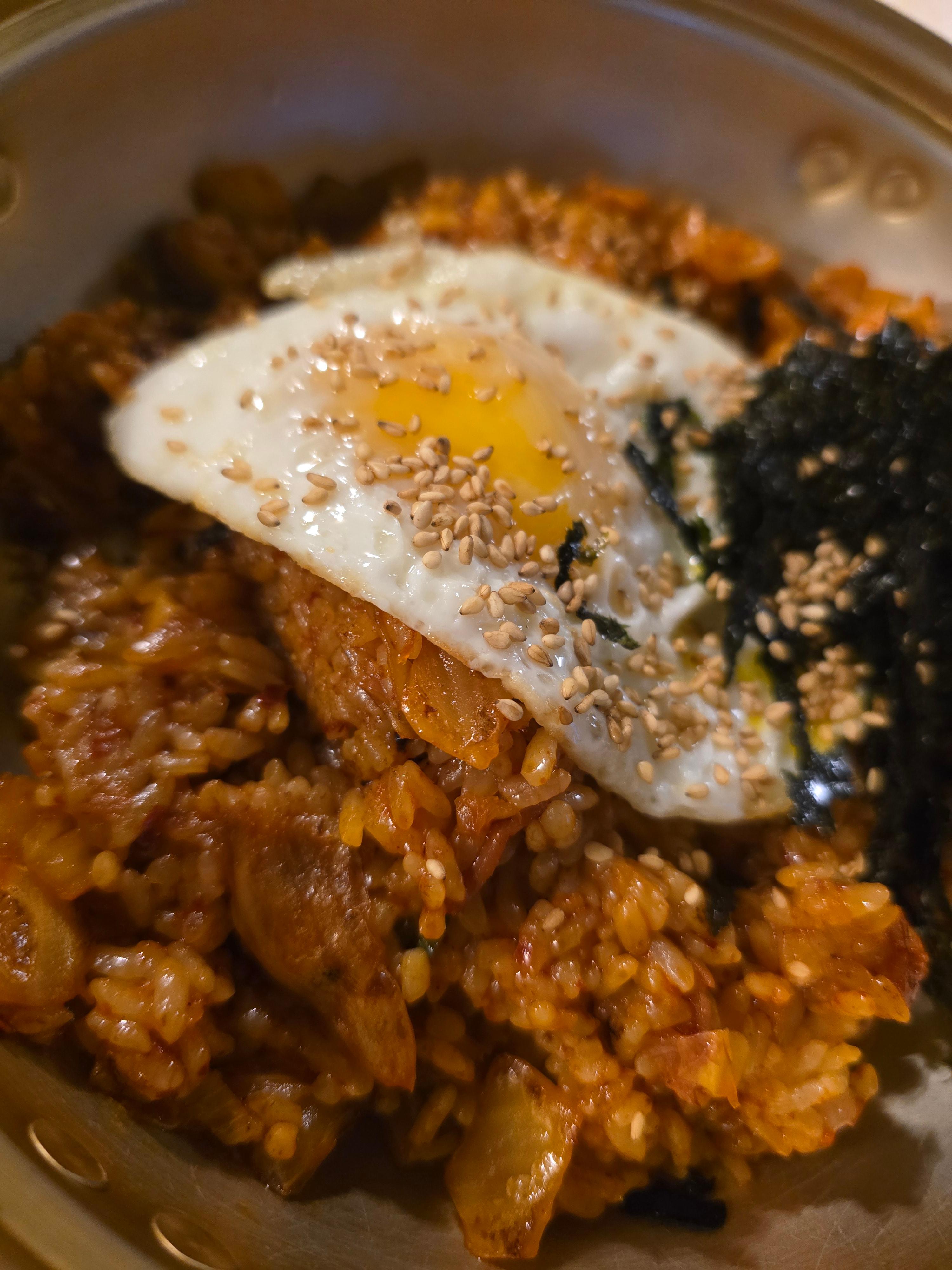 고슬고슬하게 볶은 밥에 잘 익은 김치, 반숙 계란 프라이와 통깨, 김가루가 더해져 기본에 충실하면서도 깊은 맛이 느껴졌어요