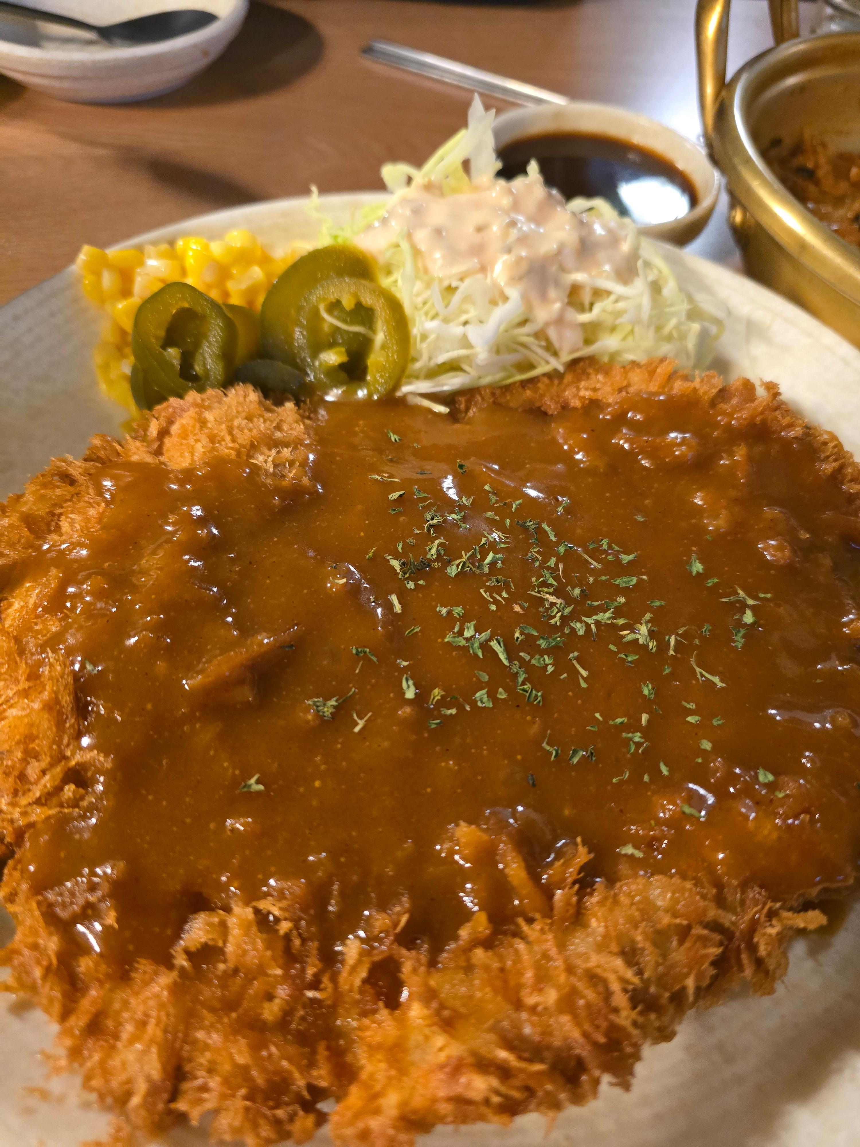 대망의 돈까스! 겉은 바삭, 속은 촉촉한 두툼한 고기에 소스는 과하지 않게 부드럽게 어울렸습니다